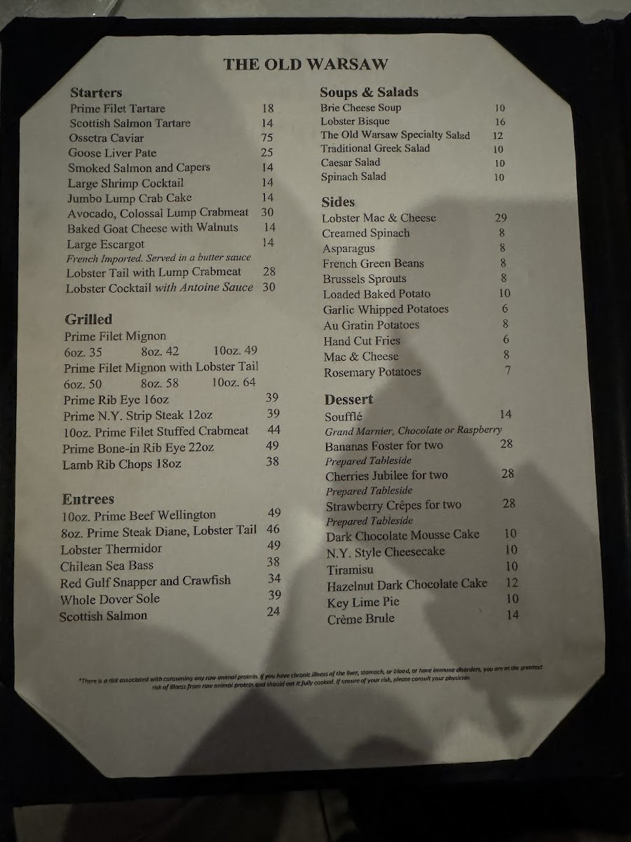 With a commitment to exceptional service and an unwavering dedication to quality, The Old Warsaw invites you to savor a culinary journey that celebrates both tradition and innovation.